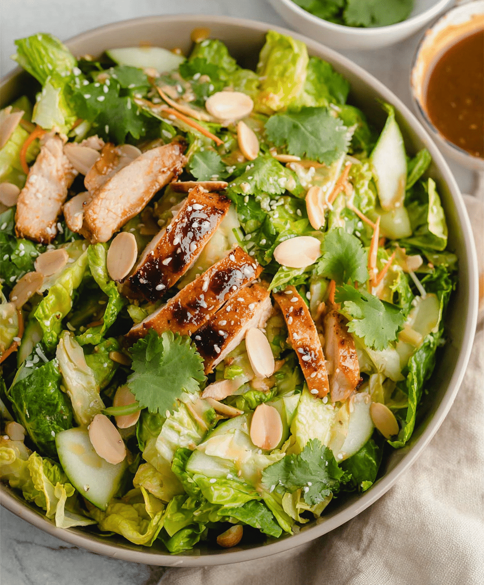 The combination of juicy chicken, crisp romaine, toasted almonds, crunchy wontons, and sesame dressing makes this salad a go-to recipe for anyone craving a healthy yet indulgent meal. Make it your own with variations, enjoy it fresh, and watch it quickly become a staple in your recipe collection.