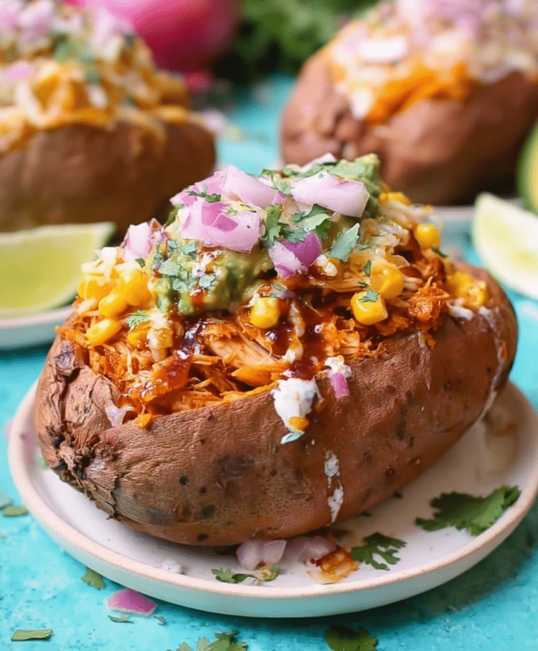 BBQ Chicken Stuffed Sweet Potatoes are a crowd-pleasing, nutrient-packed dish that’s as visually appealing as it is flavorful. With tender sweet potatoes, saucy shredded chicken, and vibrant toppings, it’s a meal that satisfies both comfort cravings and healthy eating goals.
