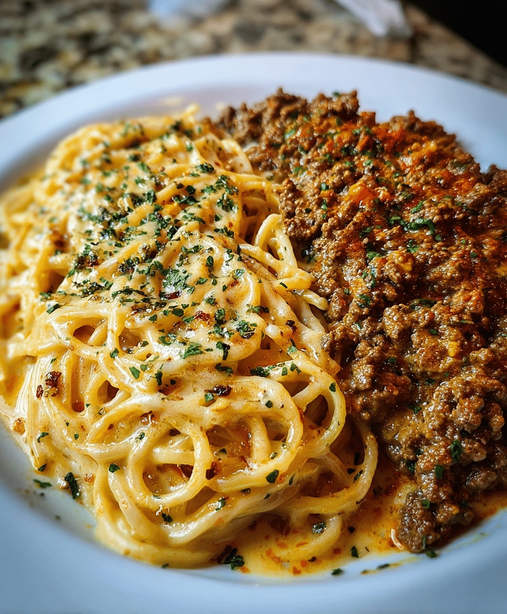 Imagine tender linguine strands coated in a luscious garlic Alfredo sauce made with Velveeta, cream cheese, mozzarella, and Parmesan — then topped (or tossed) with buttery, Cajun-seasoned ground beef. It’s the perfect fusion of spicy and creamy, offering restaurant-level flavor from simple pantry ingredients.