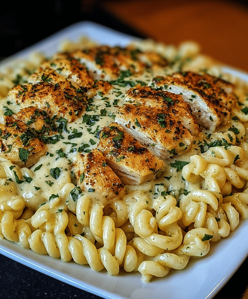 Creamy Garlic Parmesan Chicken with Cheesy Twisted Pasta – Easy Comfort Dinner