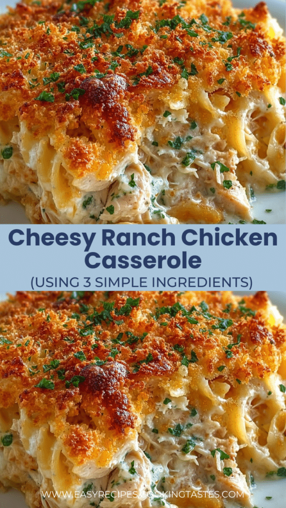 Cheesy Ranch Chicken Casserole is a timeless, comforting dish that brings warmth to any table. Its creamy chicken, tender pasta, and crispy topping make it irresistible for both family dinners and casual gatherings. With flexible ingredient options, easy prep, and satisfying flavor, it’s a recipe you’ll return to again and again.