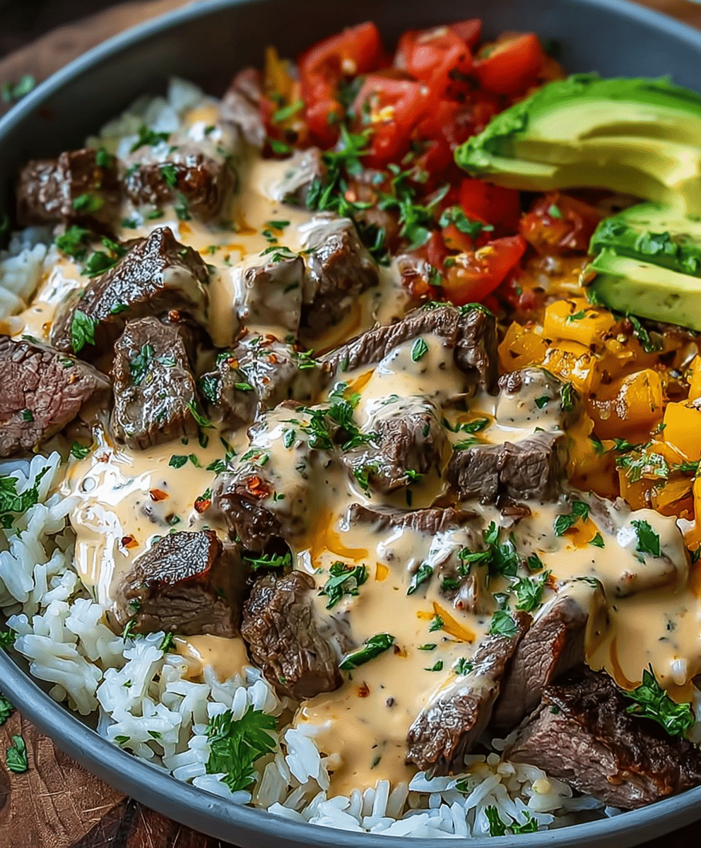Cheesy Steak & Queso Rice Delight is a quick, satisfying, and flavorful dinner that will delight your whole family. The combination of juicy steak, creamy cheese sauce, and perfectly cooked rice creates a comforting, restaurant-quality meal at home. With optional fresh garnishes like cilantro, lime, avocado, and jalapeños, this dish is customizable for every palate. Perfect for busy weeknights or casual gatherings, it’s sure to become a favorite that you’ll make again and again. Save this recipe, share it with friends, and enjoy the perfect balance of cheesy, savory, and fresh flavors in every bite.