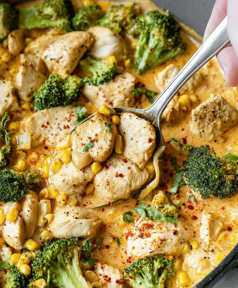 This Creamy Chicken with Sweetcorn and Broccoli transforms simple, everyday ingredients into a quick, indulgent weeknight meal. Its rich, velvety sauce coats tender chicken and crisp-tender vegetables, creating a satisfying combination of flavors and textures. Perfect for family dinners, meal prep, or cozy evenings, this dish is versatile, colorful, and full of comforting goodness. Save it, make it, and enjoy a creamy, nutrient-packed dinner that’s sure to become a regular in your rotation.
