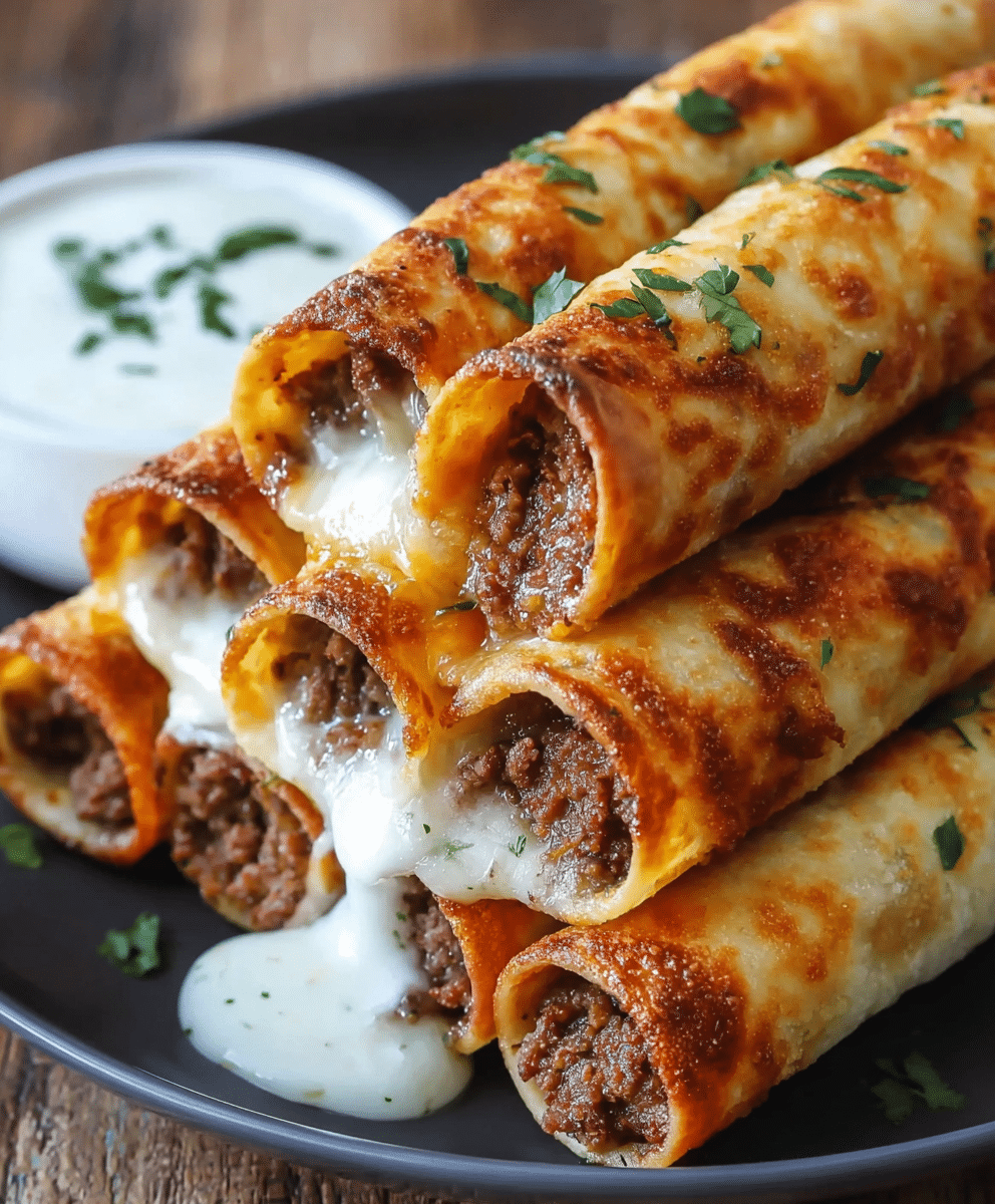 Whether you’re serving them for a game day, family dinner, or casual snack, these taquitos bring together the best of Mexican-inspired flavors with a homemade touch. Imagine biting into a crispy shell that gives way to gooey cheese and savory beef, all topped with fresh cilantro and paired with your favorite dips. It’s comfort food elevated.