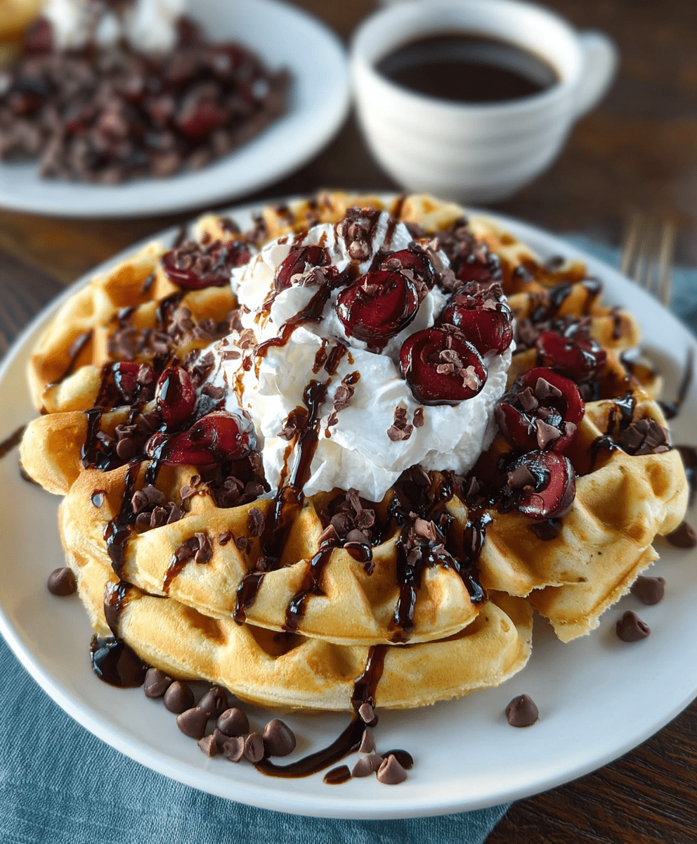 Delightful Cherry Chocolate Chip Waffles, perfect for a special breakfast or brunch.