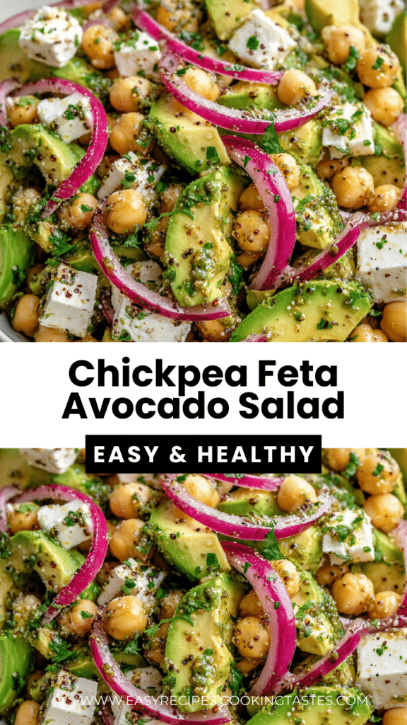 This Chickpea Feta Avocado Salad is the ultimate fresh, quick, and healthy Mediterranean-inspired dish. Bursting with vibrant colors, bold flavors, and a satisfying combination of textures, it’s perfect for light lunches, quick dinners, or easy meal prep. Keep this recipe handy for when you want a fast, nourishing, and flavorful salad that’s both satisfying and visually stunning. Save, share, and make it your go-to salad for busy days or a refreshing side for any meal.