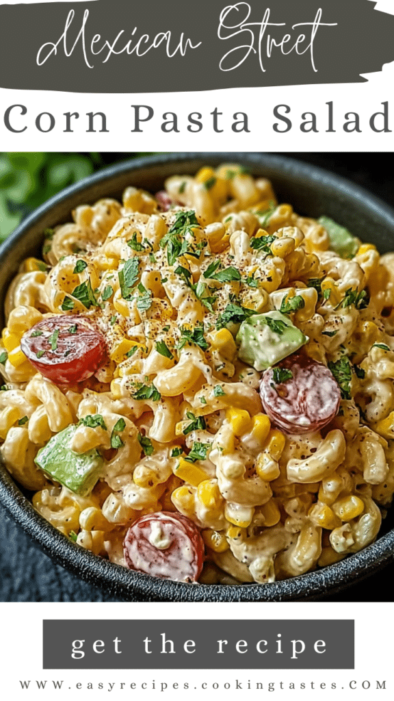 Ideal for family gatherings, potlucks, or as a make-ahead dish, this salad is as versatile as it is flavorful. It’s quick to assemble, can be chilled in advance, and holds up well without losing texture. Every forkful delivers a balance of creamy, tangy, smoky, and sweet flavors, accented by crisp, tender corn and pasta. Even kids and adults alike will love this spin on a traditional Mexican favorite.