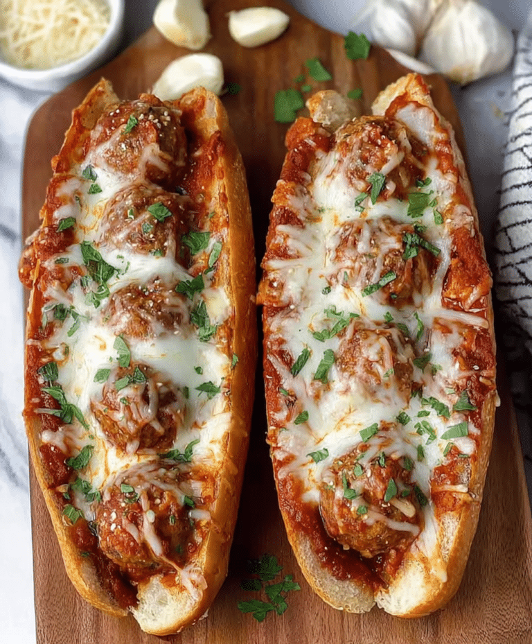 Delicious Garlic Bread Meatball Subs are hearty sandwiches featuring juicy ricotta and beef meatballs smothered in marinara, topped with melted mozzarella, and nestled in garlic-buttered hoagie rolls. Perfect for a comforting, crowd-pleasing meal.