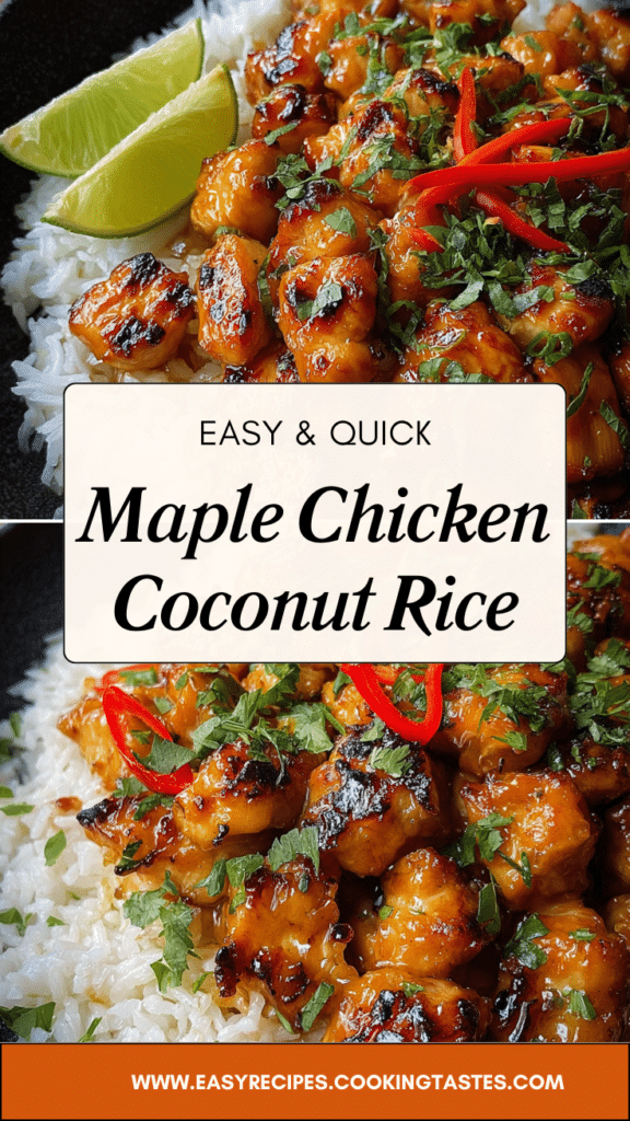 Enjoy a delicious and comforting maple chicken coconut rice recipe that combines sweet, spicy, and creamy flavors in one bowl. This easy maple chicken coconut rice is perfect for weeknight dinners, family meals, or when you crave a flavorful, gluten-free dish that feels both indulgent and wholesome. Tender, marinated chicken coated in a sweet-spicy maple glaze pairs perfectly with rich, creamy coconut rice, creating a balanced and satisfying meal. With bright garnishes like lime, cilantro, and toasted coconut, this recipe is not only visually appealing but also packed with texture and flavor. Ideal for home cooks looking for a quick, flavorful, and family-friendly dinner, it’s a recipe that’s easy enough for beginners yet impressive enough to serve for guests.
