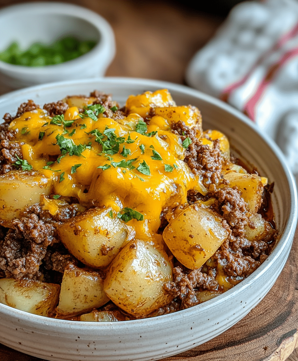 This Easy Slow Cooker Tex-Mex Beef and Potato Bake is a flavorful, hearty, and family-friendly dish perfect for weeknight dinners or casual gatherings. Ground beef is browned and simmered with onions, garlic, and a medley of black beans, corn, diced tomatoes with green chilies, and tender potatoes, all seasoned with chili powder, cumin, and paprika for a bold Tex-Mex flavor. Slow cooking allows the potatoes to soften perfectly while the spices infuse every bite. Topped with melted cheddar cheese and garnished with fresh cilantro, this dish delivers creamy, cheesy, and savory satisfaction. Serve with sour cream for an added tang, and you’ve got a complete, one-pot comfort meal that’s rich in flavor, easy to make, and sure to become a family favorite.