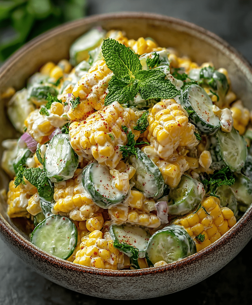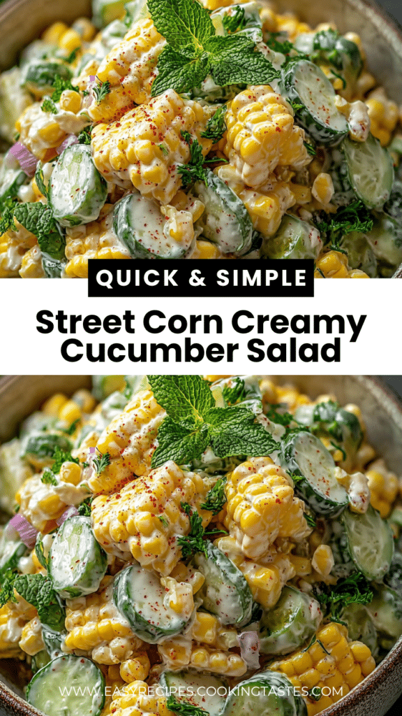 Discover the refreshing taste of Street Corn Creamy Cucumber Salad, a delightful mix of sweet corn and cool cucumbers, perfect for summer.