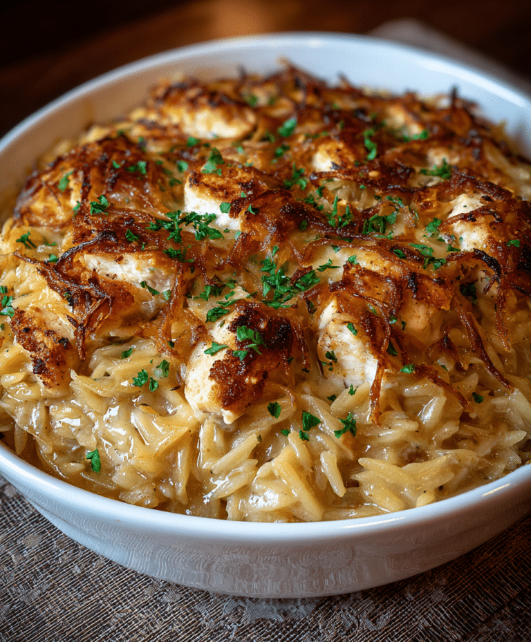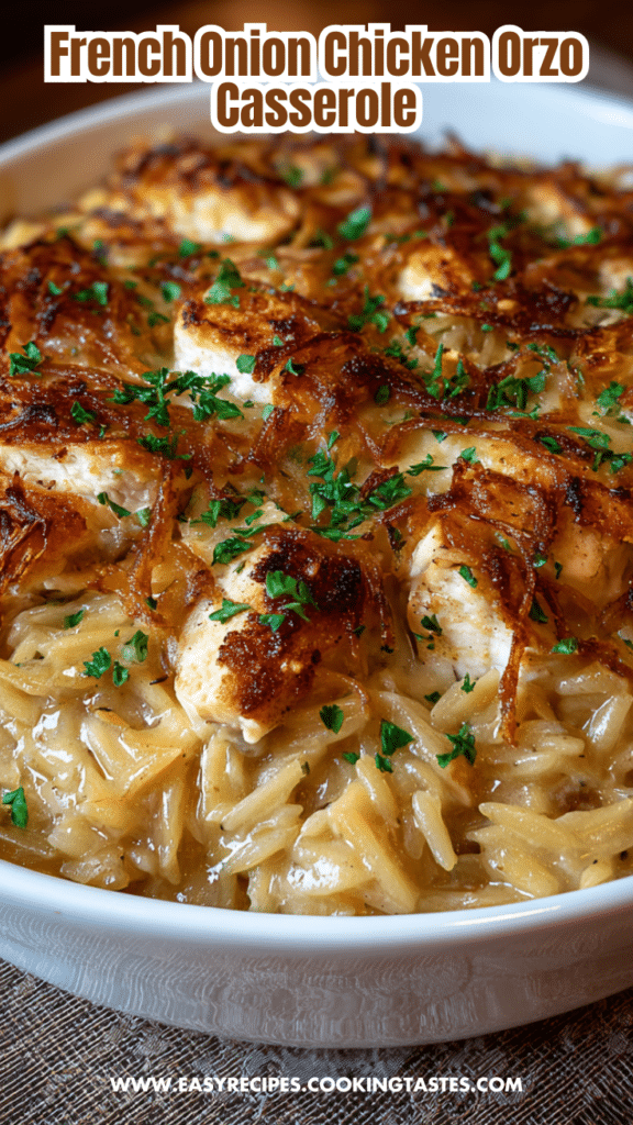 French Onion Chicken Orzo Casserole: A Comforting, Cheesy Family Favorite
