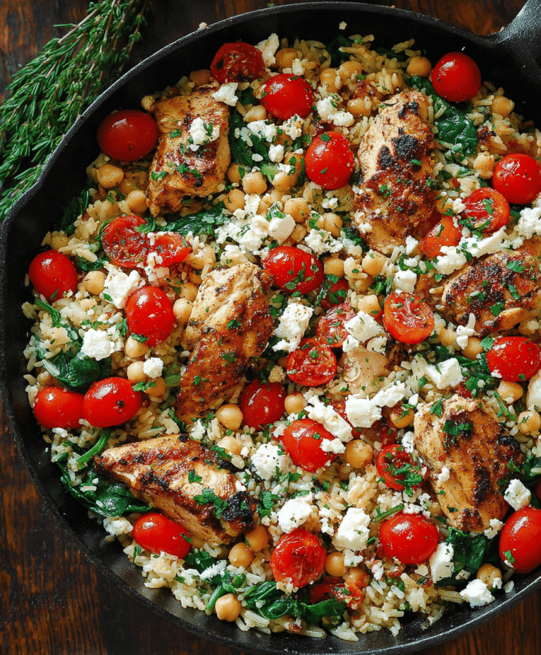 If you’re craving a Mediterranean-inspired dinner that’s full of flavor, quick to make, and packed with protein and veggies, this Greek Chicken and Lemon Rice is your new go-to recipe. Ready in just 30 minutes, this one-pot meal combines juicy chicken thighs, vibrant grape tomatoes, nutrient-rich spinach, creamy feta, and zesty lemon rice in a colorful, satisfying dish.