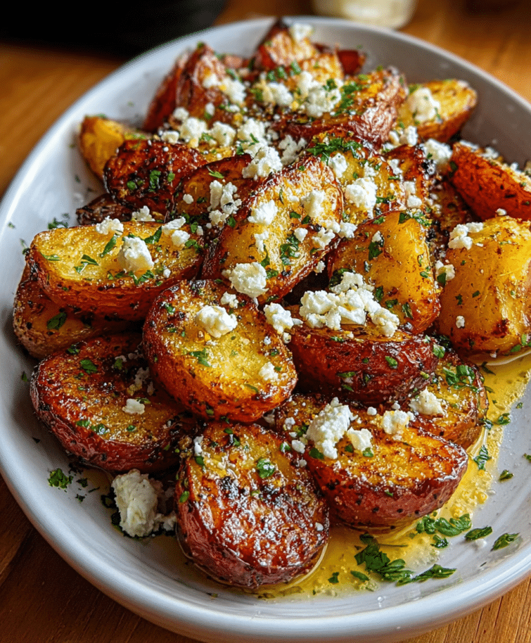 Greek Feta Roast Potatoes are the ultimate side dish that transforms simple roasted potatoes into a Mediterranean masterpiece. With crispy exteriors, tender, creamy interiors, and a punch of zesty lemon and garlic, these potatoes are elevated with crumbled feta and fresh parsley for a dish that feels both comforting and gourmet. This recipe is perfect for weeknight dinners, special occasions, or whenever you want to bring a bit of Greek flair to your table.