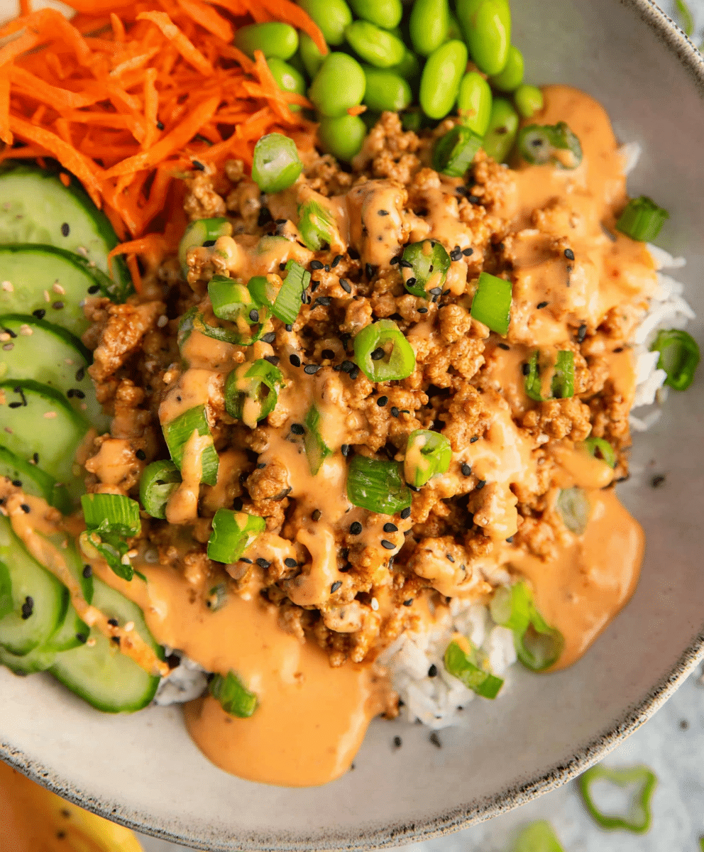 Ground Turkey Rice Bowls with Bang Bang Sauce