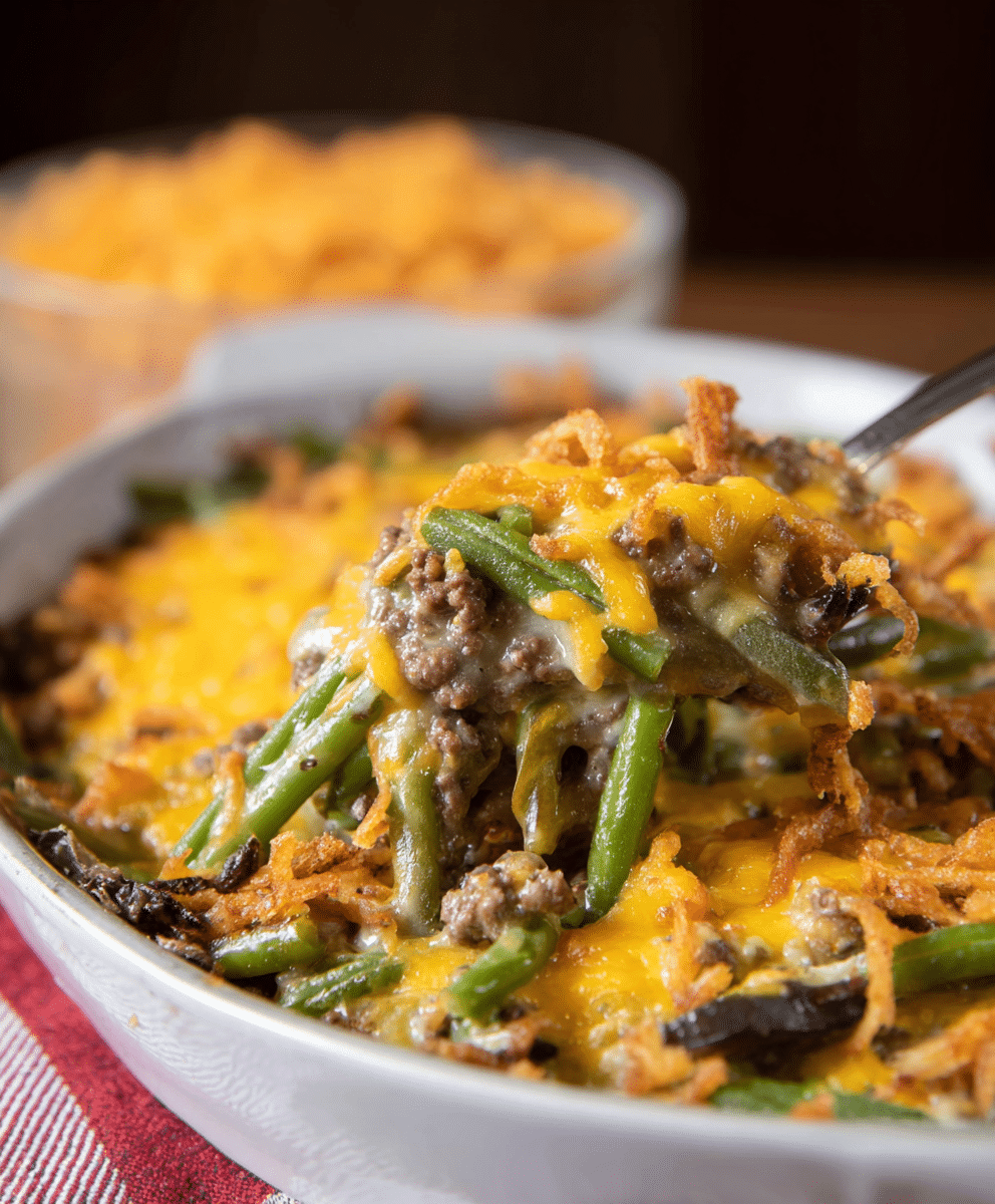 Hamburger Green Bean Casserole with Mushrooms