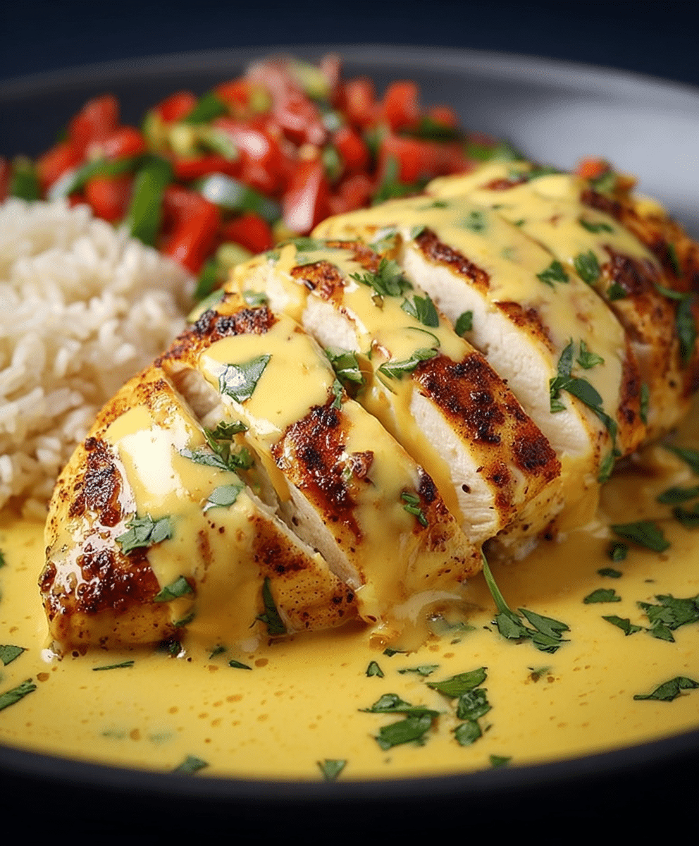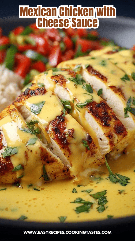 Mexican Chicken with Cheese Sauce features tender, spiced chicken breasts smothered in a rich, creamy cheddar cheese sauce for a gourmet high-protein meal ready in just 45 minutes.