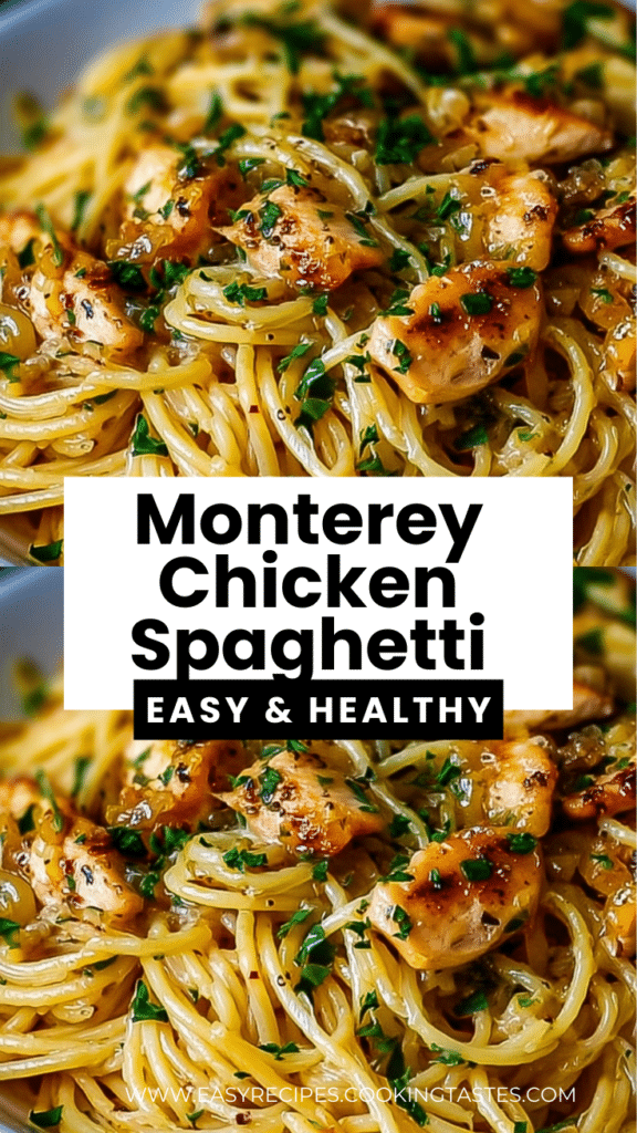 Monterey Chicken Spaghetti is a hearty, cheesy pasta dish that combines tender chicken, creamy Monterey Jack cheese, and perfectly cooked spaghetti in a rich, comforting sauce. Perfect for easy weeknight dinners.