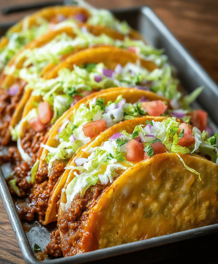 Perfect for game day, family dinners, or casual entertaining, these tacos are designed to be crispy, cheesy, and fully loaded with fresh toppings. Once you try this method, you’ll never go back to soggy tacos or complicated fry-ups again.