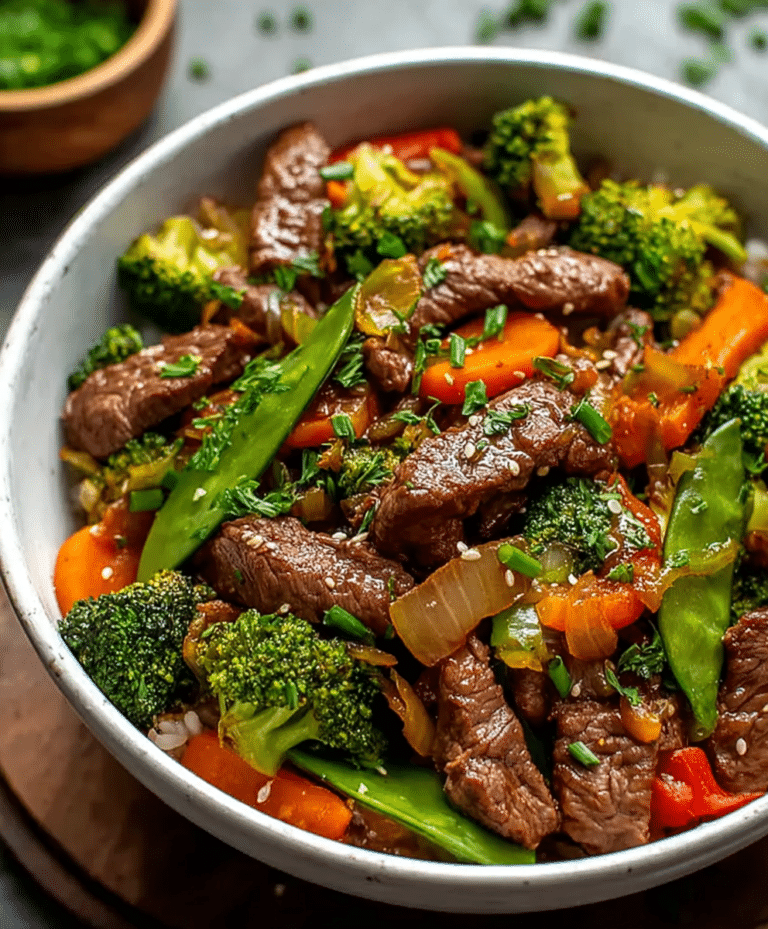 This Quick & Easy Beef Stir Fry with Vegetables is the perfect weeknight dinner for busy schedules, packed with tender beef, crisp-tender vegetables, and a savory-sweet sauce that brings every bite to life. With just 30 minutes from start to finish, this stir fry delivers bold flavor, vibrant colors, and satisfying texture, making it an ideal meal for families, meal prep, or a quick healthy dinner any night of the week. The combination of tender slices of beef, crunchy bell peppers, snap peas, carrots, and broccoli in a rich soy-hoisin sauce ensures every bite is bursting with flavor. Perfect for anyone craving a flavorful Asian-inspired dish without the fuss, this beef stir fry is both nourishing and indulgent. Serve it over steamed rice or enjoy it on its own for a wholesome, colorful meal that’s guaranteed to impress.