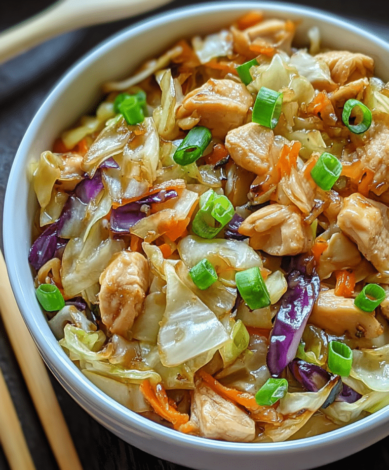 Looking for a fast, flavorful weeknight meal? These Egg Roll Bowls with Chicken and Cabbage are a perfect solution, combining tender chicken, crisp cabbage, and vibrant vegetables in a savory sauce. Ready in just 10 minutes, this dish is ideal for busy weeknights, meal prep, or anyone craving an Asian-inspired dinner without takeout. The combination of sesame oil, soy sauce, and ginger gives every bite bold flavor, while shredded cabbage and carrots add crunch and freshness. Serve with optional sesame seeds, cilantro, or sriracha for a colorful, customizable meal that’s both nutritious and satisfying.