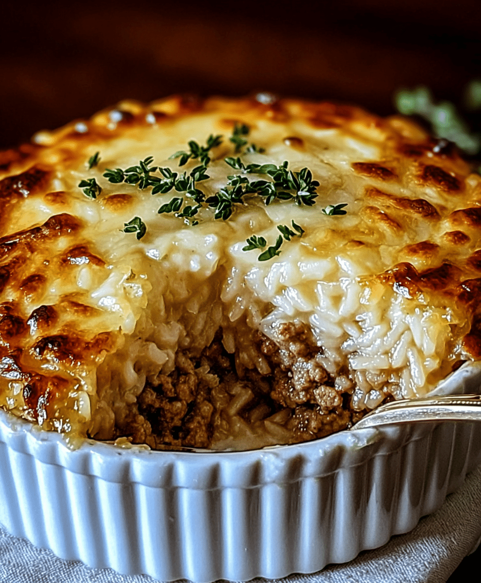 Savory French Onion Ground Beef and Rice Casserole Delight
