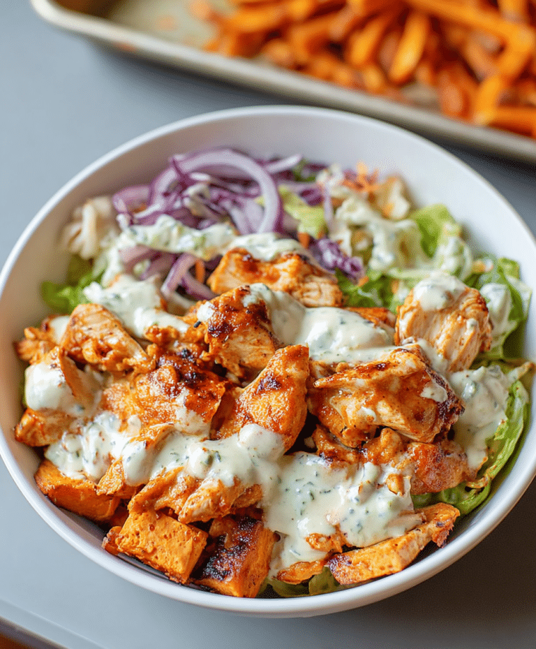 Looking for a one-pan meal that’s packed with flavor, protein, and minimal cleanup? These Sheet Pan Buffalo Chicken and Sweet Potato Bowls are exactly what you need. Tender, spicy buffalo chicken paired with roasted sweet potatoes and crisp broccoli creates a balanced dish with the perfect mix of heat, sweetness, and freshness.