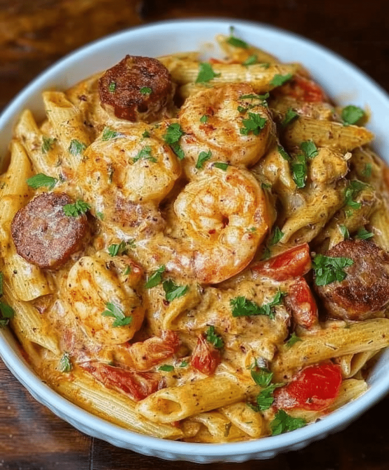 This Shrimp and Sausage Pasta is a crowd-pleasing, creamy, and indulgent dish that combines tender shrimp, smoky sausage, colorful peppers, and a rich cheesy sauce over al dente pasta. Perfect for family dinners, weeknight indulgence, or special occasions, it’s quick, flavorful, and versatile.