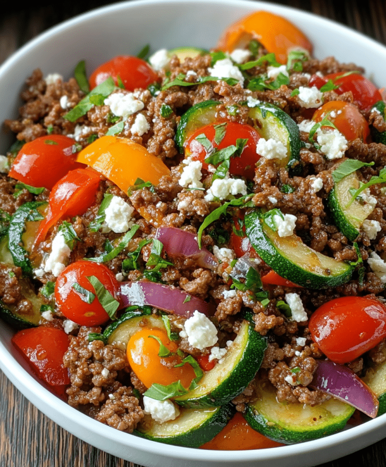 Perfect for busy weeknights, meal prep, or quick lunches, this dish combines the hearty richness of ground beef with the freshness of zucchini, bell peppers, cherry tomatoes, and tangy Kalamata olives. Topped with creamy feta and a squeeze of lemon, every bite is balanced, wholesome, and satisfying.